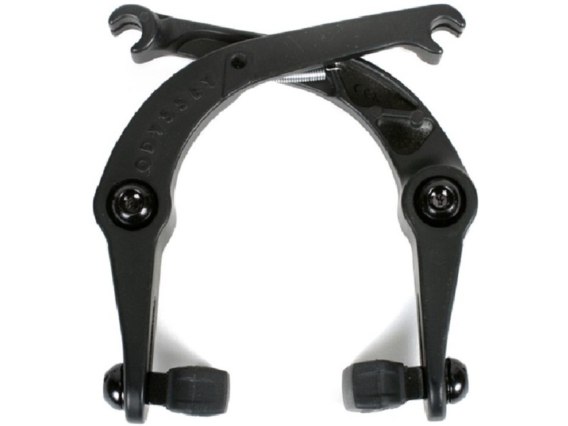 Springfield Brake One of the most important goals that we had when we sat down to work on new braking designs was to make the whole system easier to install (and remove) without sacrificing performance. We also wanted to be sure that every component would be very affordable too. The Springfield Brake drops the two ordinary (and confusing) brake springs and replaces them with one central spring that applies the same force to each arm, requiring no additional adjustment. This makes assembly incredibly easy - just bolt it on and go. The brake arms are designed to maximize stiffness and save weight without adding excessive cost. By die-casting the arms and using shared tooling to make each side, the Springfield meets all of the original design goals, resulting in a very powerful and affordable brake. Also available in a kit with matching lever and cable. Features Hassle-free installation More clearance for larger tires One spring design Can be used for front or rear