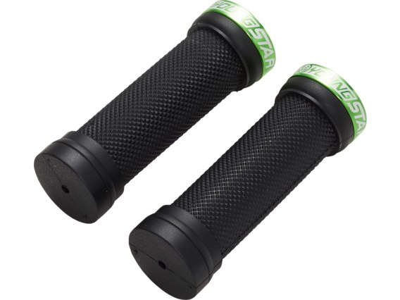In our Youngstar models, we use a specially reinforced plastic below the normal grip surface and especially at the grip end. This technology protects the sensitive and exposed grip and handlebar ends longer from damage. Safety for the little ones is our top priority. To avoid falls by slipping off the grips, we have chosen a very soft rubber compound for the Youngstar grips, which offers a significantly higher grip and damping properties. This gives the little ones a firm grip on the handlebars in any situation. Due to the soft rubber compound, there is design-related to a faster wear than in comparable handles with a harder rubber compound, but which offer significantly less grip and damping. In addition, there is the possibility to turn the handle by 180 degrees after wearing out the top side, so that the handle can be used a little further. - Handle structure: Diamond - Outer diameter: Ø 28 mm - Inner diameter: Ø 22.2 mm (standard diameter handlebar end) - Suitable for all standard handlebars on the market - Width: 98 mm - Weight: 66 g - Material: Reverse Medium Compound / Aluminum (Lock Rings)
