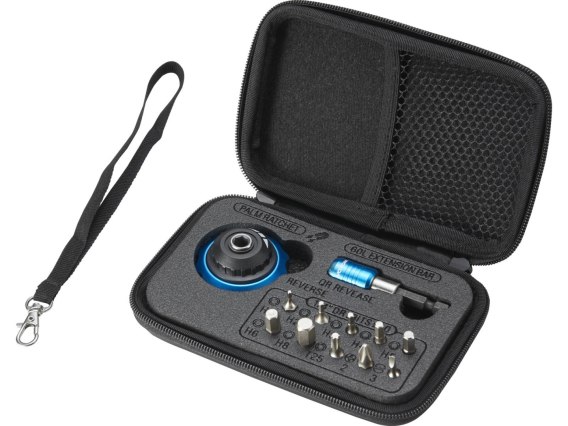 - Thumb ratchet suitable for working in narrow areas - Includes the following tools: 1x thumb ratchet incl. Extension 7x hex bits (2 mm, 2.5 mm, 3 mm, 4 mm, 5 mm, 6 mm, 8 mm) 3x bits (T25, PH2, SL3) - Colour: Black